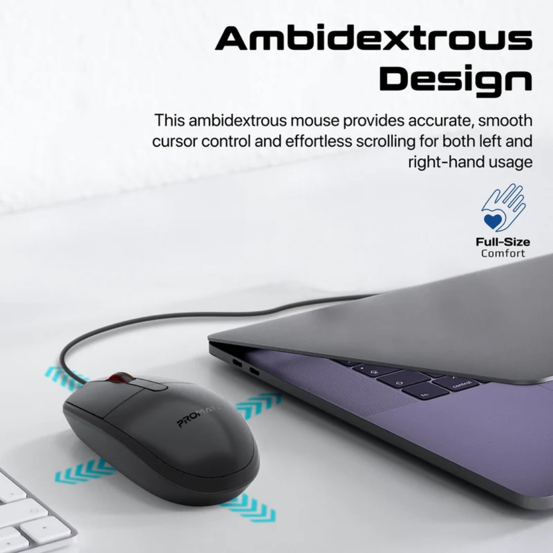 Scroll, track, and glide with ease using CM-1200, an ergonomic, wired mouse designed to boost efficiency. Track through the screen with drop-dead accuracy using the high-grade, optical sensor mouse with 1200 DPI. CM-1200 is designed to be used comfortably in the left or right hand; this ambidextrous mouse sits perfectly in the palm of your hand. Enjoy hassle-free connectivity without worrying about batteries– just plug in the mouse to your USB port and you're ready to go.